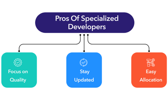 A simple example of this would be to consider a food influencer. An average vlogger might cover more topics within a video; however, you’ll get quality content only when a food vlogger makes the same video. Similarly, with developers, specialization helps with quality and development speed.