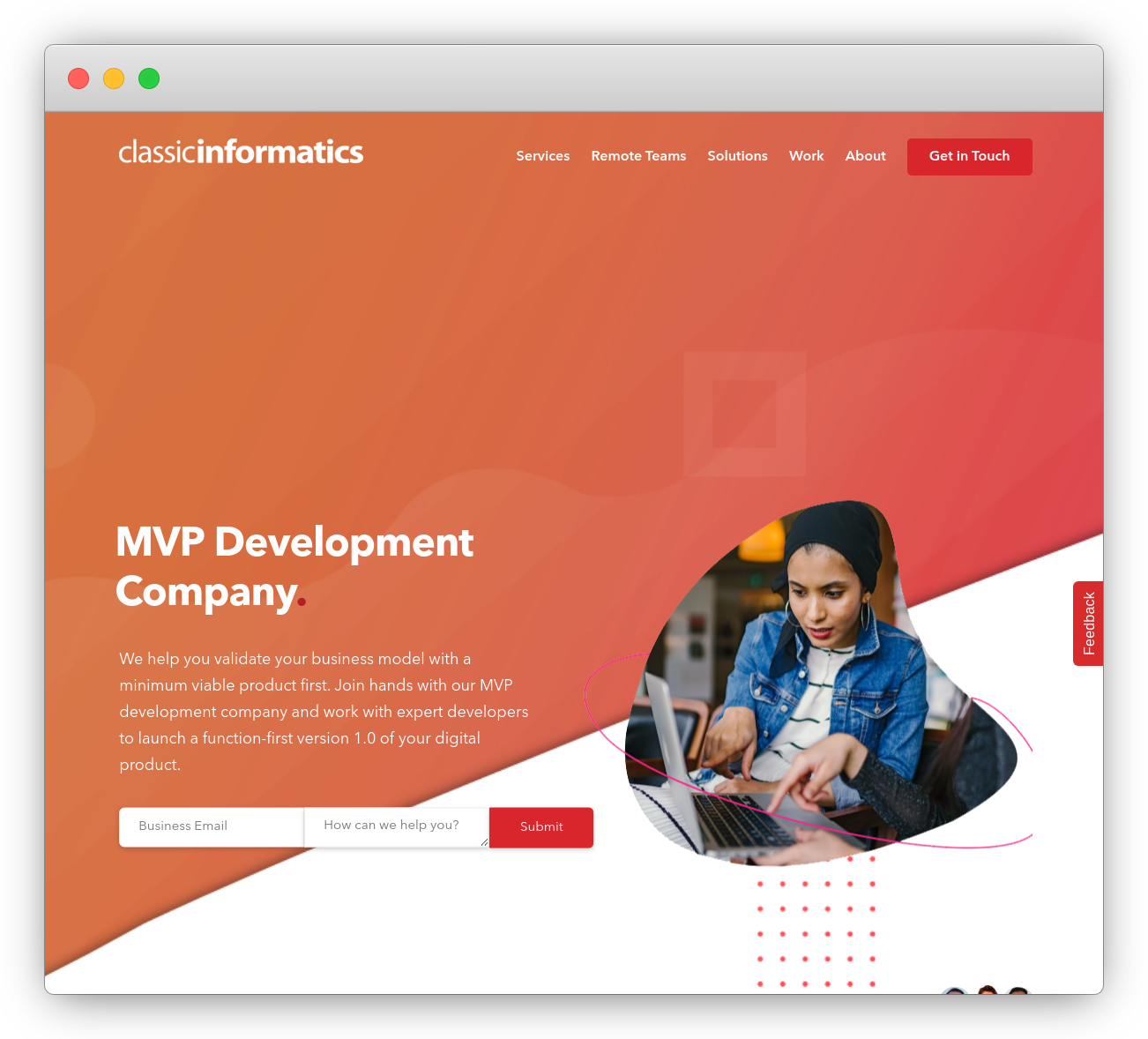 Classic Informatics, a leading MVP development company, specializes in helping businesses validate their models through the creation of a Minimum Viable Product (MVP). Collaborating with its remote developers and business analysts, the team guides you in launching a function-first version of your digital product, allowing you to test market demand, see user expectations, delight early users and adopters, and accelerate the MVP development.